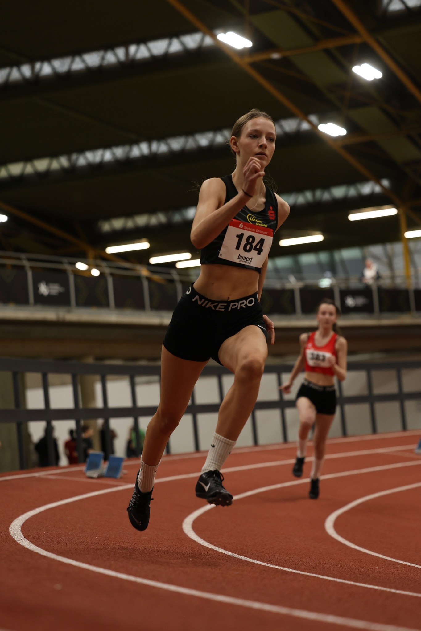 Maya Waschulewski (W13), verbesserte sich in gleich zwei Disziplinen. Im 60-m-Sprint kam die Sinzigerin mit pB auf Platz sieben. Bemerkenswert die Zielannahme bei den 60 m Hürden. Indem Maya ihren Oberkörper auf dem letzten Meter noch nach vorn warf, gewann sie nicht nur ihren Lauf, sondern kam im Gesamtergebnis mit neuer pB auf Platz eins.