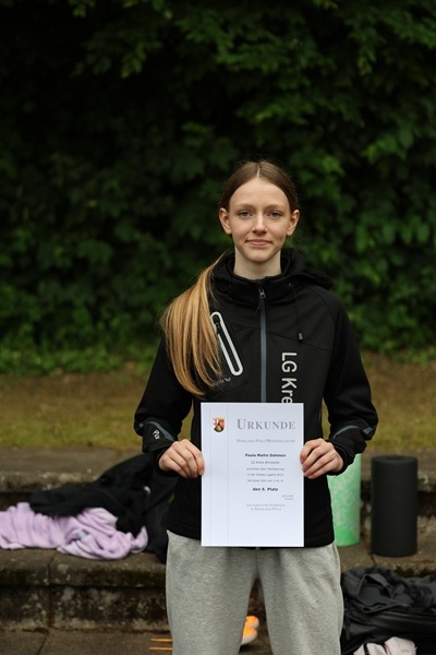 Einen tollen fünften Platz erzielte Paula Dahmen (W15) im Hochsprung und bestätigte somit ihre Platzierung von der Rheinland-Pfalz-Hallenmeisterschaft aus dem Januar.