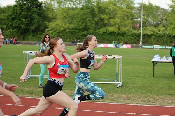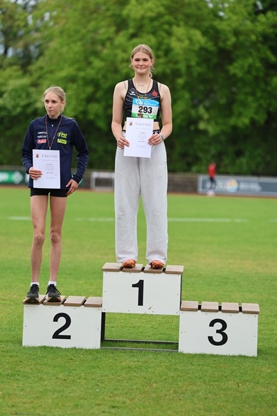 Isabella Zavelberg und Mia Hogen (beide WJU20) versuchten sich im Weitsprung. Eine Platzierung unter den besten Acht war aber bei dieser Landesmeisterschaft nicht möglich. Besser lief es für die beiden im 400-m-Hürdenlauf. Mit jeweils persönlicher Bestleistung kam Isabella auf den Bronzerang und Mia wurde Vierte.