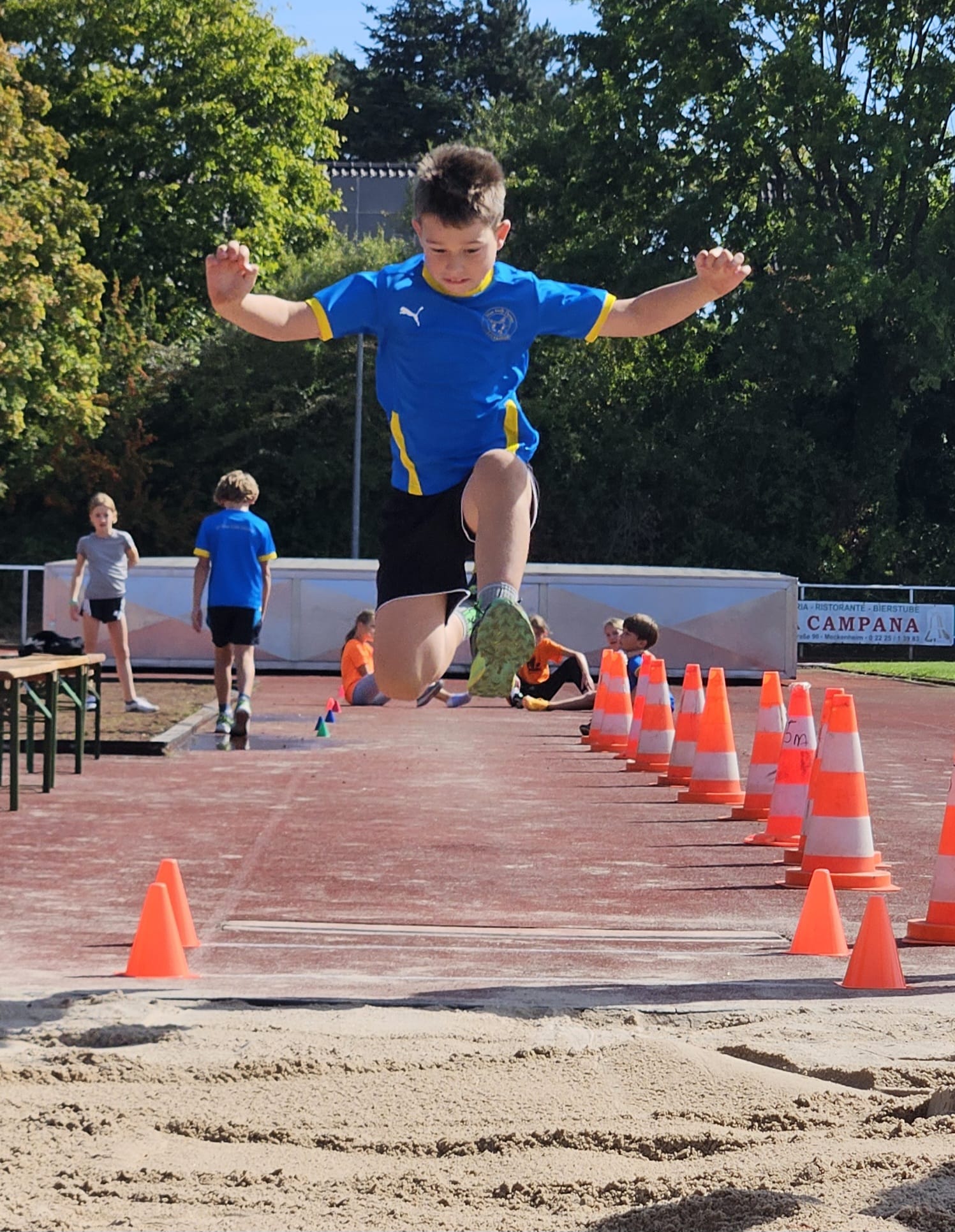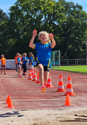 Zu Ehren des 2023 an Leukämie verstorbenen Tim Lobinger hat die LG Meckenheim in 2024 ein Athletik-Abzeichen entworfen. Dieses galt es am 06.09.2025 im Preuschoff-Stadion wieder zu erlangen. Tim Lobinger war der erste deutsche Stabhochspringer, der 6m überquerte. Er nahm an 4 Olympischen Spielen teil und war Hallenweltmeister. In seiner langen Karriere sprang er 99 mal 5,80 m und höher. Nach seiner aktiven Karriere als Leichtathlet war er erfolgreicher Athletiktrainer im Fußball und trainierte u.a. mit Joshua Kimmich. Um das „Tim-Lobinger-Athletik-Abzeichen“ zu erlangen sind neben leichtathletischen Disziplinen daher auch Koordination, Kraft und Fitness unter Beweis zu stellen – und natürlich Stabhochsprungübungen zu absolvieren. Jana Fröhner, Laura Emons, Eva Kreuzberg, Emma und Max Dung, Felix Hellmich und Ben Schäfer, die Leichtathletik-Kids vom SV Blau-Gelb Dernau, stellten sich dieser Herausforderung und waren allesamt erfolgreich. Mit viel Spaß und Ehrgeiz sammelten sie ihre Stempel und verbesserten ihre bisherigen Leistungen in allen Bereichen.