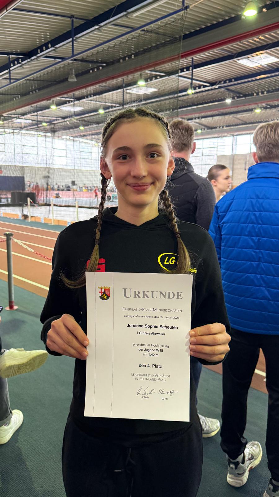 Magdalena Schuh (W14) kehrte mit 2x Silber und 1x Bronze an die Mittelahr zurück. Im Weitsprung fehlten der 12-Jährigen nur 4 Zentimeter zur Goldmedaille. So wurde sie mit 4,90 m Rheinland-Pfalz-Vizemeisterin. Das Magdalena eine gute Hürdensprinterin ist, zeigte die Linderin auch in der Rheinmetropole. Mit neuer pB in 9,93 Sekunden sprintete Magdalena auf den Bronzerang.