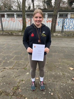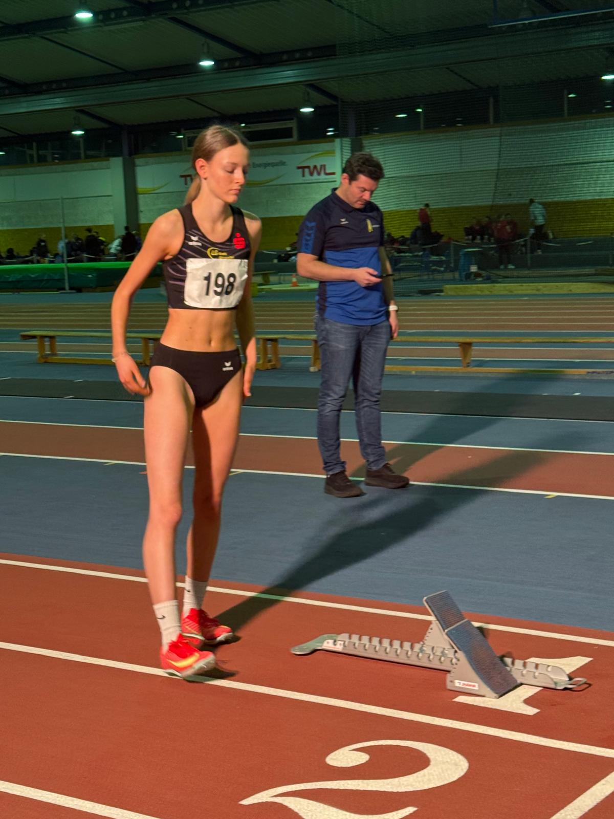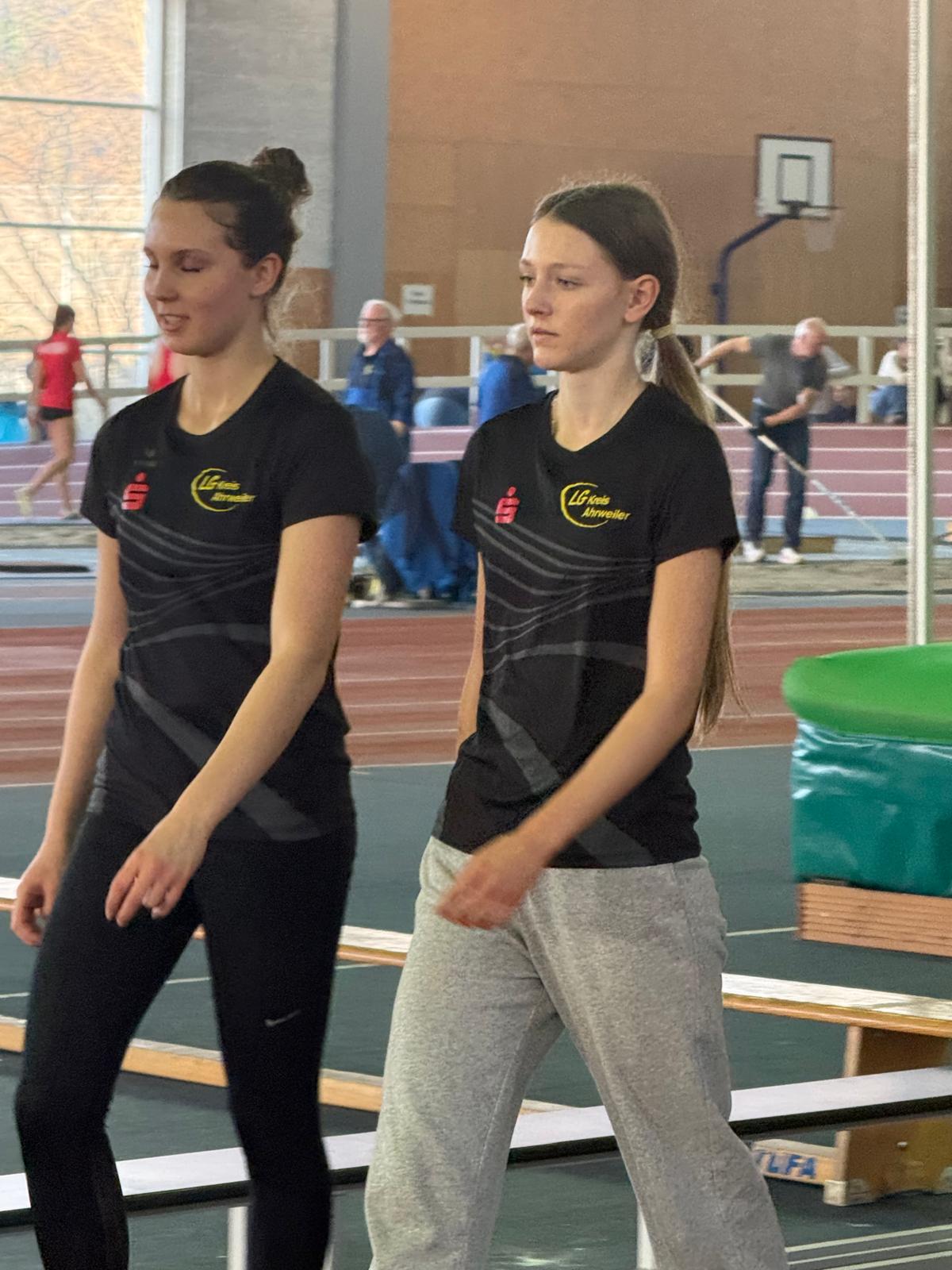 Über die 60- und 200-m-Sprintdistanzen erreichten Julia Urbaniak und Paula Dahmen in der WJU18 mit persönlichen Bestzeiten (pB) Platzierungen im mittleren Bereich eines großen Teilnehmerfeldes. Im Hochsprung zeigte Paula ihr vielversprechendes Potenzial. Wenngleich die Latte im letzten Versuch über die 1,50m nicht liegen blieb, war dieser Sprung in Anlauf- und Absprunggestaltung sowie der Lattenüberquerung der beste der 15-Jährigen. Die Ferse war es, die die Latte riss. Die Meckenheimerin erreichte Platz 5 bei ihrer zweiten Hallenlandesmeisterschaft.