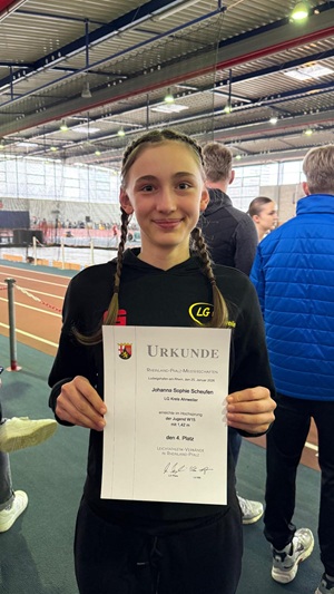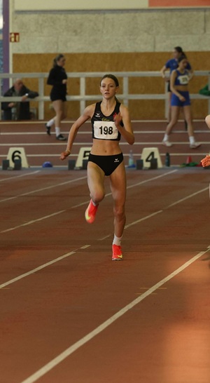 Über die 60- und 200-m-Sprintdistanzen erreichten Julia Urbaniak und Paula Dahmen in der WJU18 mit persönlichen Bestzeiten (pB) Platzierungen im mittleren Bereich eines großen Teilnehmerfeldes. Im Hochsprung zeigte Paula ihr vielversprechendes Potenzial. Wenngleich die Latte im letzten Versuch über die 1,50m nicht liegen blieb, war dieser Sprung in Anlauf- und Absprunggestaltung sowie der Lattenüberquerung der beste der 15-Jährigen. Die Ferse war es, die die Latte riss. Die Meckenheimerin erreichte Platz 5 bei ihrer zweiten Hallenlandesmeisterschaft.