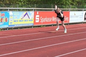 Wie im letzten Jahr trat Lina Näkel in der W12 im Block Sprung/Sprint bei den unter 14-Jährigen im Hachenburger Burbach-Stadion an. Mit einer soliden Leistung im Speerwurf startete die 12-jähringe Nachwuchsathletin aus Dernau in den Fünfkampf. Der Speer blieb bei 15,35 Meter im Rasen stecken. Damit belegte Lina zunächst Platz fünf. Nach dem Hürdenlauf (10,9 Sek.), der richtig gut lief, verkürzte sie den Punkteabstand auf die Führende und übernahm nach der dritten Disziplin, dem Hochsprung (1,36 m) selbst die Führung. Mit dem 75-m-Sprint (10,63 Sek.) baute Lina ihren Vorsprung weiter aus und gab diesen bis zuletzt auch nach dem Weitsprung nicht mehr ab. Mit einer sehr gute Leistung im ersten Jahr U14, belohnte sich Lina mit zwei neuen persönlichen Bestleistungen im Sprint und über die Hürden, der Qualifikationsnorm für die Rheinland-Pfalz- Meisterschaften im September, die sie mit 2093 Punkten deutlich übertroffen hat, und dem Titel Rheinland-Jugendmeisterin U14.